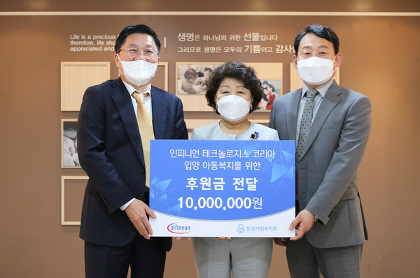 동방사회복지회(회장 김진숙)는 26일 인피니언 테크놀로지스 코리아가 입양대기아동 및 국내 소외 아동을 위해 후원금 1천만 원을 전달했다고 밝혔다.