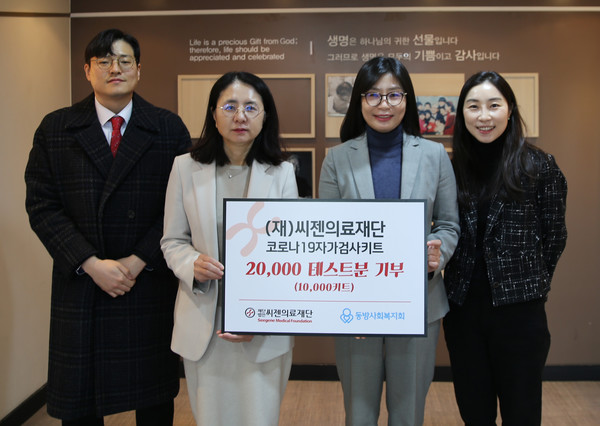 동방사회복지회는 22일 질병검사 전문의료기관 (재)씨젠의료재단(이사장 천종기)과 코로나19 자가검사키트 20,000 테스트분에 대한 전달식을 진행했다고 밝혔다.