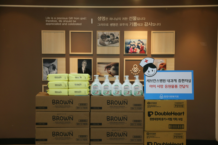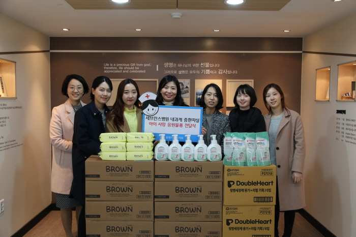 부모를 기다리는 입양대기아동들을 위해 세브란스병원 내과계 중환자실의 간호사 다섯 분이 방문해 물티슈와 젖병세정제를 전달해 주셨는데요,