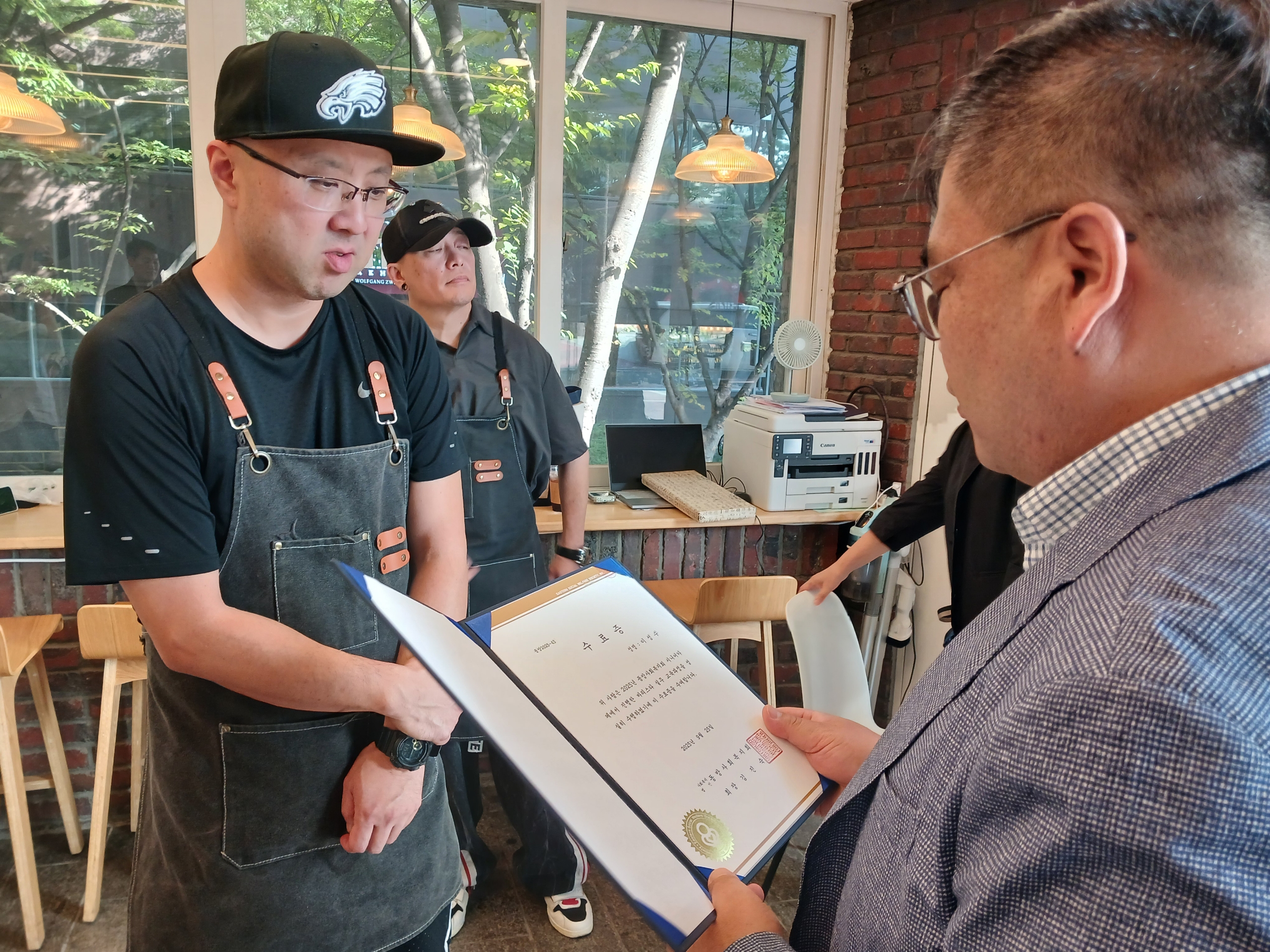 수료식에는 서대문시니어클럽 김태경 관장, 동방사회복지회 직원, 해외입양인연대 직원 등이 참석했으며, 본회에서 발급한 수료증은 서대문시니어클럽 김태경 관장이 직접 전달하였습니다. 현장에서는 수료생들이 정성껏 준비한 커피와 파니니도 함께 나누는 시간도 마련되었습니다. 시식 후 카페이스턴 매니저는 “전문가 못지않은 솜씨를 보여주었다”며 수료생들의 실력을 높이 평가했습니다.