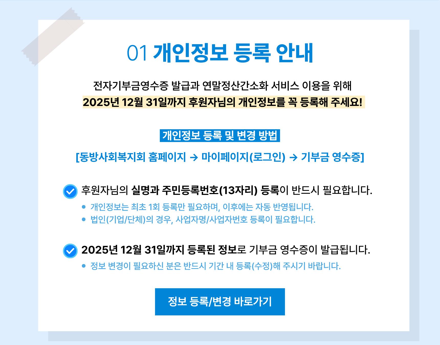 사회복지법인 동방사회복지회 ㅣ 사업등록번호 111-82-00397ㅣ 대표자 김도종